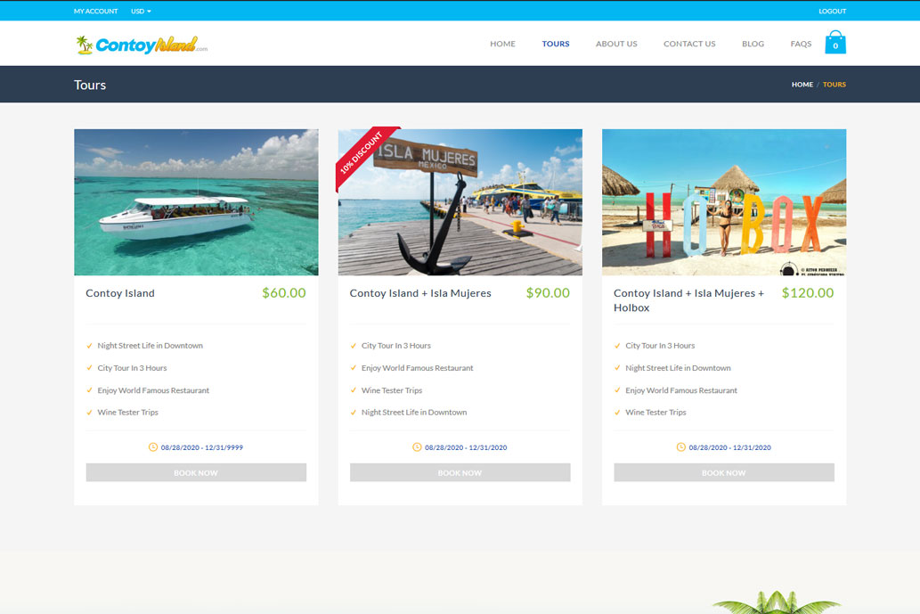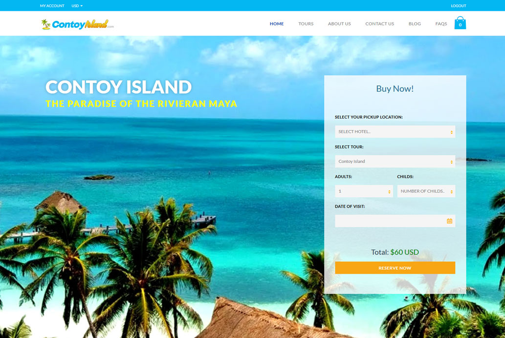 Desarrollamos una tienda online donde se ofrecían tours a diferentes puntos de la Riviera Maya, especialmente para Isla Contoy.