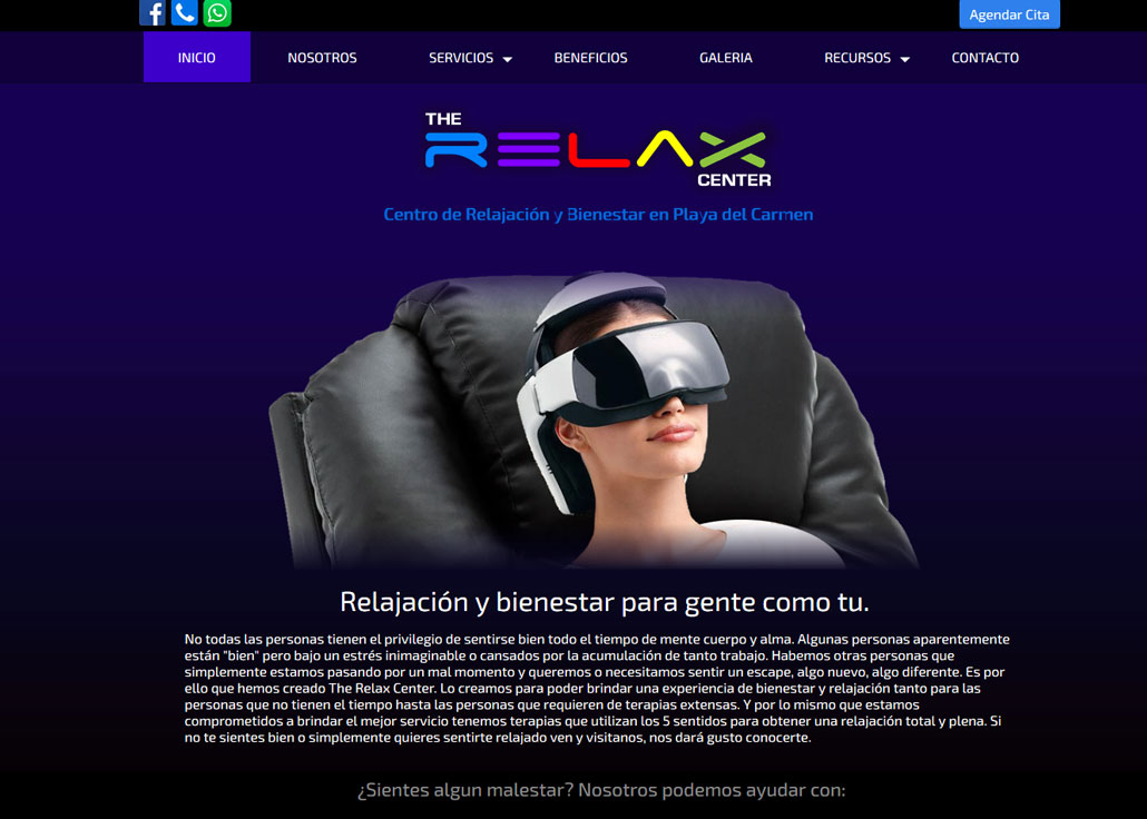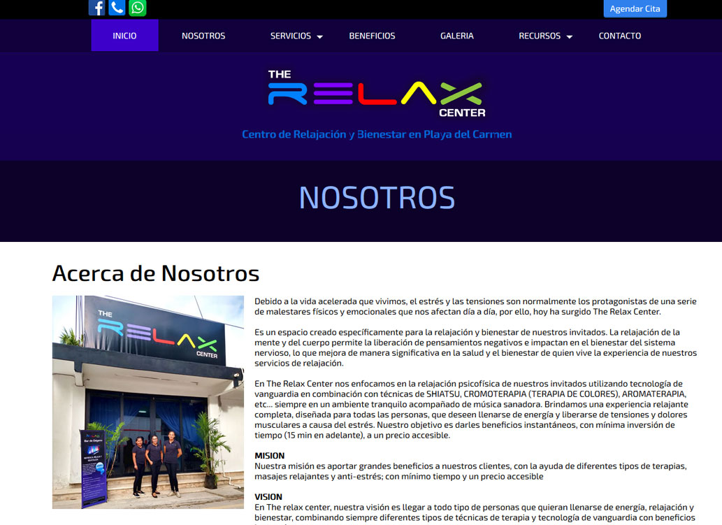 Página corporativa para “The Relax Center”, diseño a la medida, diseño responsivo y compatible con tablets y móviles. En therelaxcenter.com podrás ver los servicios que esta empresa de relajación ofrece, contactarlos y agendar una cita.
